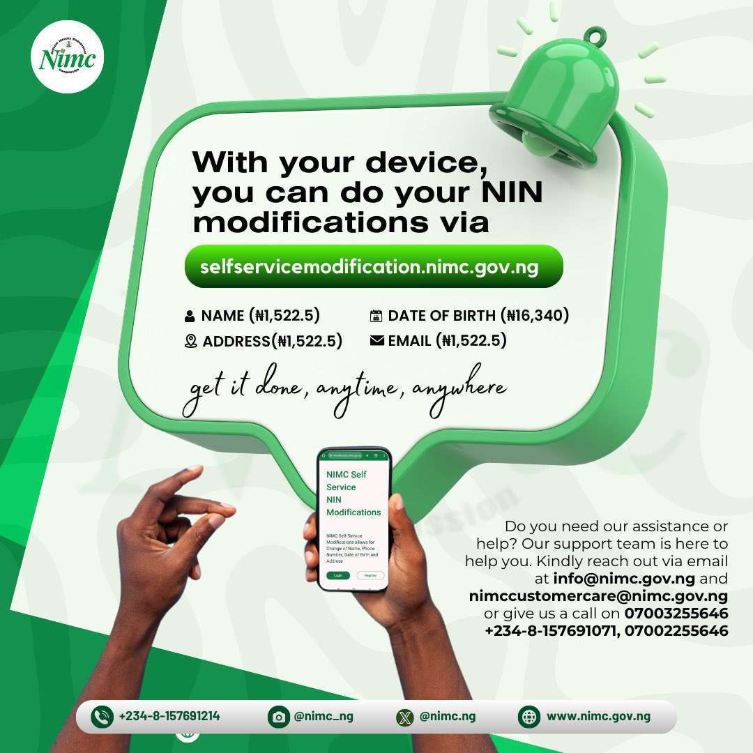 NIMC lists fees for correcting NIN details