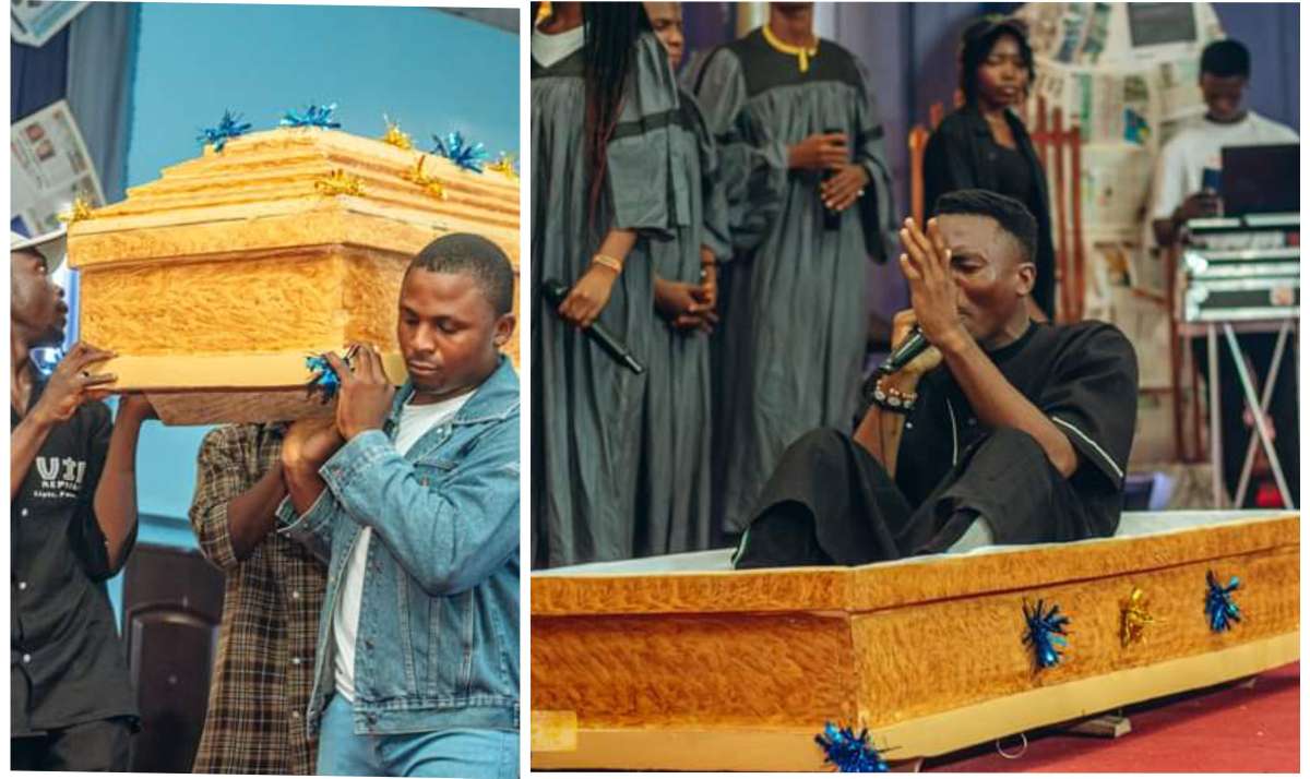 Gospel singer, Onoja arrives stage in a coffin