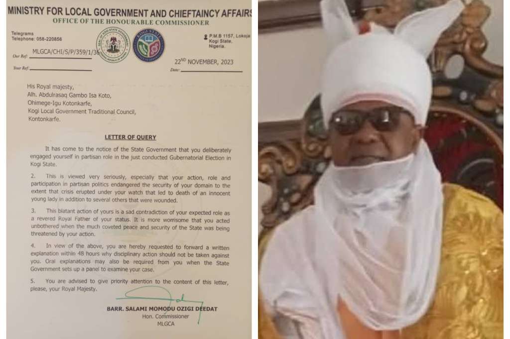 Gov. Yahaya Bello queries Kogi monarch over 'partisanship'